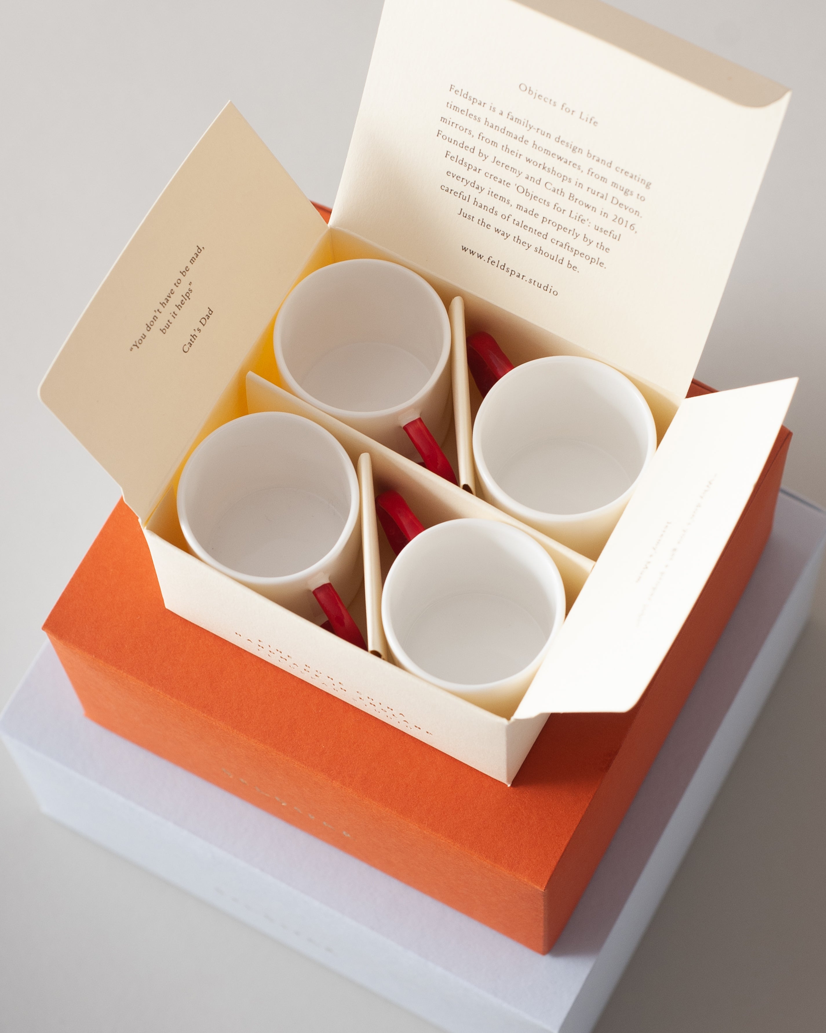 Inspired by items their grandparents used daily that were fifty or even 300 years old and still serving their purpose perfectly, Jeremy and Cath launched Feldspar with a single mug — it had an undulating profile to sit perfectly in the hand (mugs are only cylindrical because they are easier to make that way) and a fine handle hand-painted in a deep Cobalt blue to echo the palette of classic chinaware. Handmade out of fine bone china, the strongest type of ceramic...