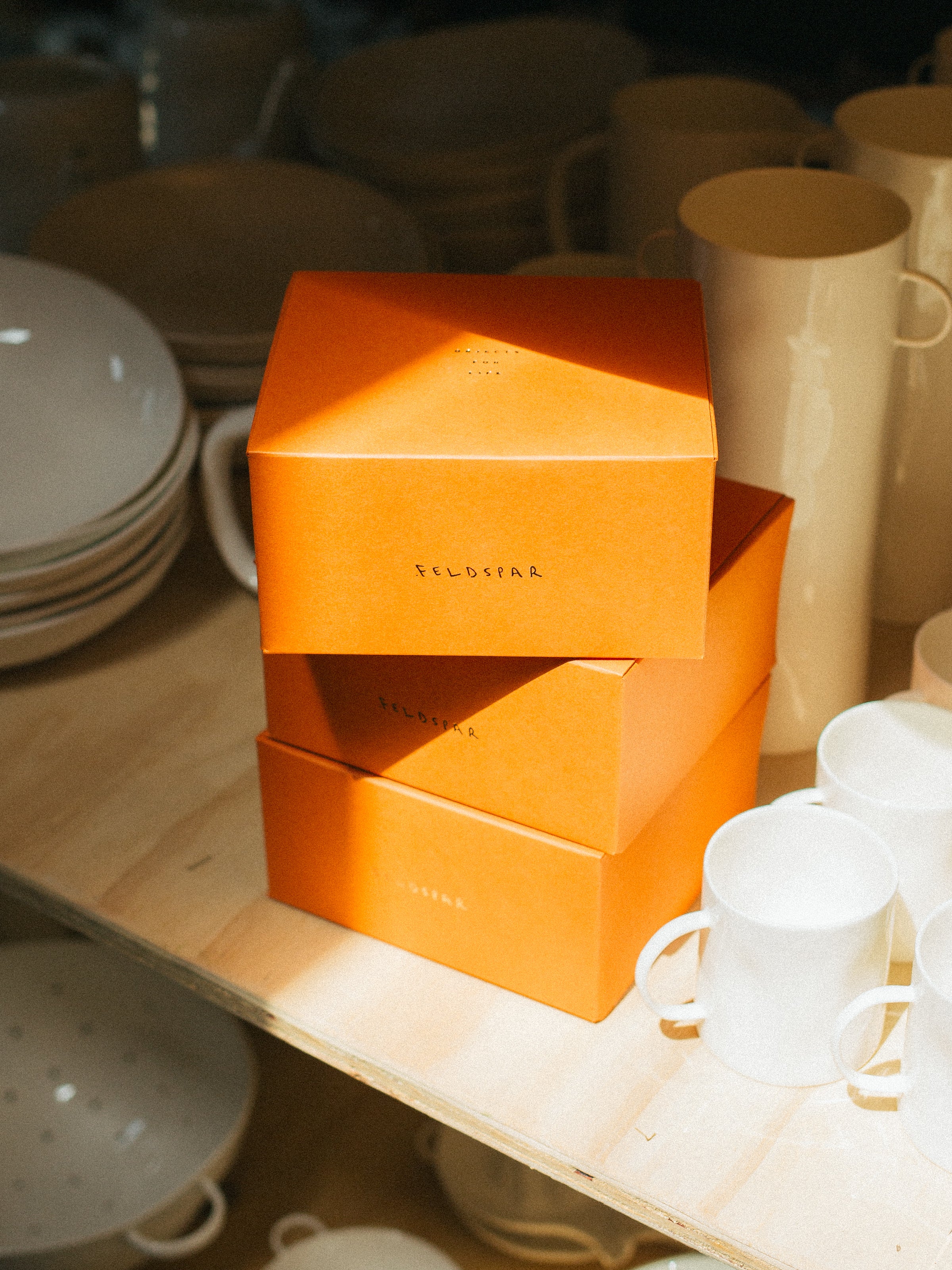 When we visited Japan, long before Feldspar was even a vague speck of an idea, Jeremy bought some socks. At the checkout, without us asking, they were wrapped in layers of tissue and tied with string, then placed in a paper bag and carefully handed to us. This labour of love for something seemingly so everyday inspired us to spend time and attention on how our objects are packaged, and the importance of how it is that they arrive with their new custodians - both thoughtfully packaged and presented with care.