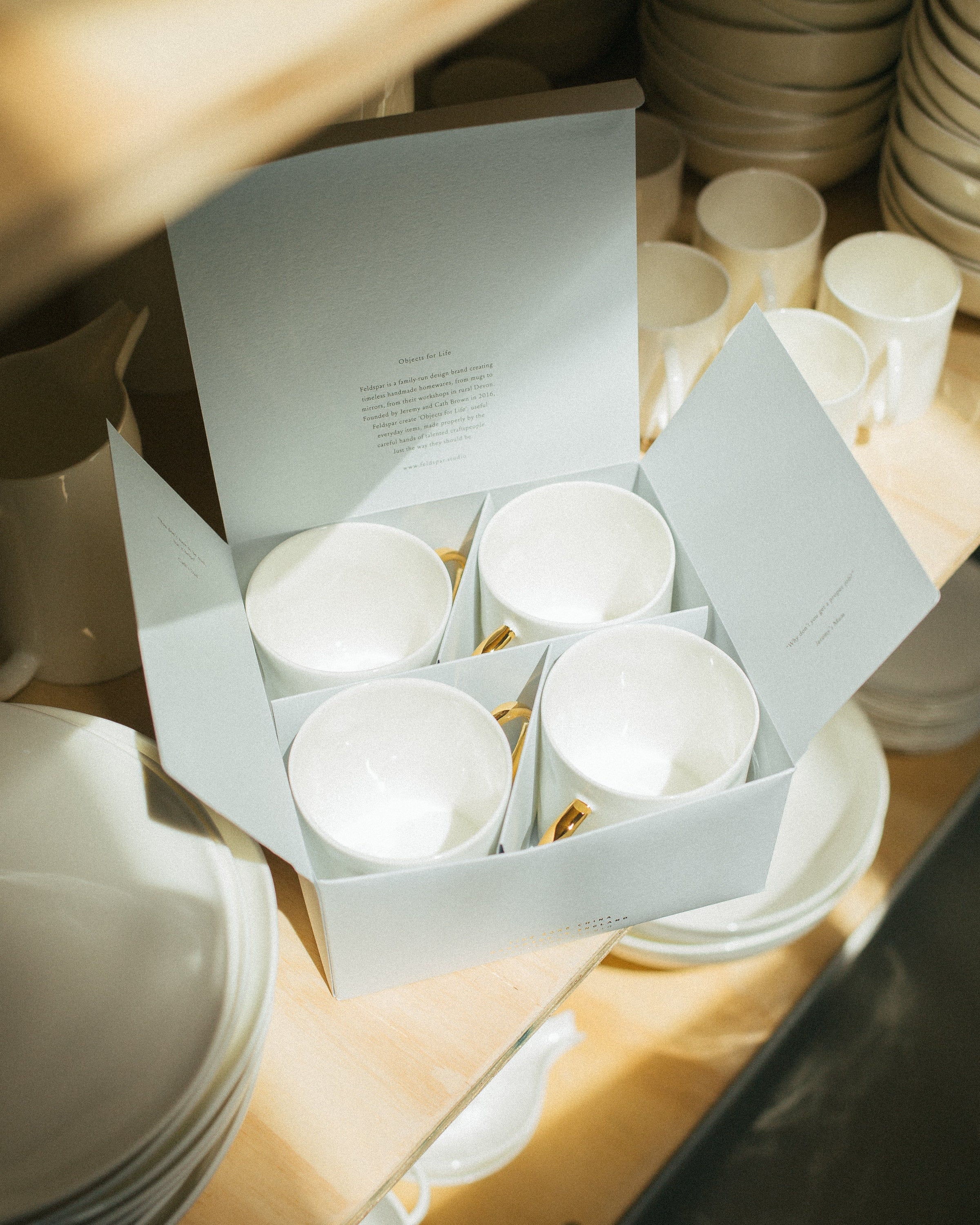 Each of our objects is handmade in our workshops in Devon, UK using locally sourced fine bone china. Fine Bone China is the strongest ceramic body so will proper care and attention these will last you for eons! All colours are dishwasher safe up to 65º except for the 24ct Gold, which is handwash only.